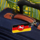 Luggage Tag with flag of Lower Saxony; design with horizontal tricolor of black, red and yellow (golden), with state’s emblem with an illustration of a white horse in the centre