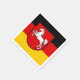 Paper napkin with flag of Lower Saxony; design with horizontal tricolor of black, red and yellow (golden), with state’s emblem with an illustration of a white horse in the centre