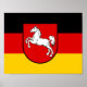 Poster flag of Lower Saxony; design with horizontal tricolor of black, red and yellow (golden), with state’s emblem with an illustration of a white horse in the centre
