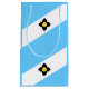 Paper bag with flag of city of Madison, Wisconsin; light blue and white flag with a black cross and yellow circle in the centre