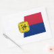 Sticker with flag of city of Memphis, Tennessee; red, white and blue flag with yellow emblem with an illustration of ship