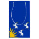 Paper Bag with design with a flag of historic county of Merioneth, in Wales, Great Britain; blue azure flag with three white goats and yellow sun