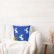 Throw pillow with design with a flag of historic county of Merioneth, in Wales, Great Britain; blue azure flag with three white goats and yellow sun
