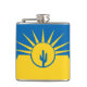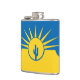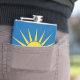 Vinyl wrapped flask with flag of city Mesa, Arizona; yellow and blue flag with stylised illustrations of desert, cactus and rising sun
