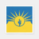 Paper napkin with flag of city Mesa, Arizona; yellow and blue flag with stylised illustrations of desert, cactus and rising sun