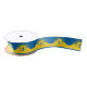Ribbon with flag of city Mesa, Arizona; yellow and blue flag with stylised illustrations of desert, cactus and rising sun