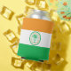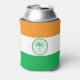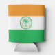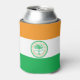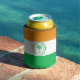 Can cooler with flag of city of Miami, Florida; flag with three horizontal bands of orange, white and green with emblem with an illustration of a palm tree in the centre