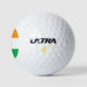 Golf balls with flag of city of Miami, Florida; flag with three horizontal bands of orange, white and green with emblem with an illustration of a palm tree in the centre