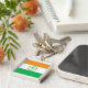 Square Keychain with flag of city of Miami, Florida; flag with three horizontal bands of orange, white and green with emblem with an illustration of a palm tree in the centre