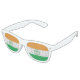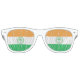 Sunglasses with flag of city of Miami, Florida; flag with three horizontal bands of orange, white and green with emblem with an illustration of a palm tree in the centre