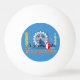 Ping pong ball with flag of city of Milwaukee, Wisconsin; light blue flag with city panorama