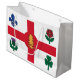 Gift Bag with the flag of Montreal, the most populous city in the province of Quebec, Canada. A white flag with a red cross, a white pine, a blue Fleur-de-lys, a red Rose of Lancaster, a shamrock, and a thistle