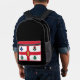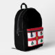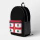 Backpack with the flag of Montreal, the most populous city in the province of Quebec, Canada. A white flag with a red cross, a white pine, a blue Fleur-de-lys, a red Rose of Lancaster, a shamrock, and a thistle