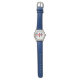 The blue band is the right color for a boys watch. My grandson loves lacrosse and the watch is easy to put on. He is ten years old. The lacrosse picture is very clear and I like the blue hands on the watch. It's good for teaching time.