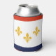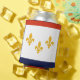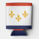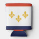 Can Cooler with flag of city of New Orleans, Louisiana; white flag with red and blue stripes and three golden fleur-de-lys
