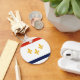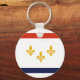 Button Keychain with flag of city of New Orleans, Louisiana; white flag with red and blue stripes and three golden fleur-de-lys