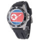 This design features the national flag of North Korea (officially the Democratic People's Republic of Korea), which is a country in East Asia constituting the northern part of the Korean Peninsula, Jeju Island and several minor islands close to the peninsula. It is bordered by China to the northwest and Russia to the northeast. It is separated from Japan to the east by the Korea Strait and the Sea of Japan (East Sea). According to article 1 of the constitution of North Korea, the DPRK is an "independent socialist State", however, North Korea is generally viewed as a totalitarian Stalinist dictatorship with an elaborate cult of personality around the Kim dynasty.