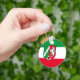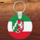 Button Keychain with variant flag of North-Rhine Westphalia (Nordrhein-Westfalens), design with horizontal tricolor of green, white and red; with a shield with illustration of river and horse in the centre