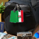 Luggage Tag with variant flag of North-Rhine Westphalia (Nordrhein-Westfalens), design with horizontal tricolor of green, white and red; with a shield with illustration of river and horse in the centre