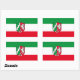 Sticker with variant flag of North-Rhine Westphalia (Nordrhein-Westfalens), design with horizontal tricolor of green, white and red; with a shield with illustration of river and horse in the centre