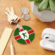 Keychain with design with a flag of historic county of Nottinghamshire, in England, Great Britain; green flag with a red cross, with inescutcheon with illustration of Robin Hood in the centre