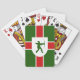 Poker playing cards with design with a flag of historic county of Nottinghamshire, in England, Great Britain; green flag with a red cross, with inescutcheon with illustration of Robin Hood in the centre