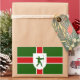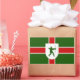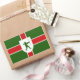 Sticker with design with a flag of historic county of Nottinghamshire, in England, Great Britain; green flag with a red cross, with inescutcheon with illustration of Robin Hood in the centre