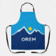 Apron with a design with the flag of Orem, Utah. A blue, white, and yellow flag with mountain peaks and the sun in the centre