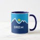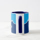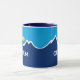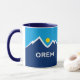 Mug with a design with the flag of Orem, Utah. A blue, white, and yellow flag with mountain peaks and the sun in the centre