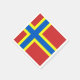 Paper napkin with design with a flag of historic county of Orkney, in Scotland, Great Britain; red flag with blue and yellow Nordic cross