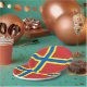 Paper plate with design with a flag of historic county of Orkney, in Scotland, Great Britain; red flag with blue and yellow Nordic cross