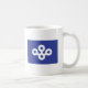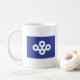 A mug with a design with the flag of Osaka Prefecture in Japan (大阪府, Ōsaka-fu), a blue flag with a white symbol