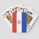 This design features the national flag of Paraguay, which is a country in South America. Paraguay is bordered by Argentina to the south and southwest, Brazil to the east and northeast and Bolivia to the northwest. Paraguay is one of only two landlocked countries in South America (the other being Bolivia); however, the country has coasts, beaches and ports on the Paraguay and Paraná rivers that give exit to the Atlantic Ocean through the Paraná-Paraguay Waterway. Due to its central location in South America, it is sometimes referred to as Corazón de Sudamérica ("Heart of South America"). The capital and largest city of Paraguay is Asunción; other major cities are Ciudad del Este, Luque, San Lorenzo, Capiatá, Lambaré, Fernando de la Mora, Limpio, Ñemby and Encarnación.