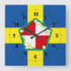 Wall Clock with design with a flag of historic county of Pembrokeshire, in Wales, Great Britain; blue azure flag with a yellow cross and white Tudor rose in the centre