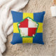 Throw pillow with design with a flag of historic county of Pembrokeshire, in Wales, Great Britain; blue azure flag with a yellow cross and white Tudor rose in the centre