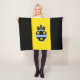 Blanket with flag of city of Pittsburgh, Pennsylvania; flag with three vertical bands of black and yellow with illustration of castle and shield in the centre