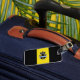 Luggage Tag with flag of city of Pittsburgh, Pennsylvania; flag with three vertical bands of black and yellow with illustration of castle and shield in the centre