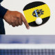 Ping Pong Paddle with flag of city of Pittsburgh, Pennsylvania; flag with three vertical bands of black and yellow with illustration of castle and shield in the centre