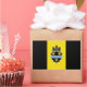Sticker with flag of city of Pittsburgh, Pennsylvania; flag with three vertical bands of black and yellow with illustration of castle and shield in the centre
