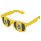 Sunglasses with flag of city of Pittsburgh, Pennsylvania; flag with three vertical bands of black and yellow with illustration of castle and shield in the centre