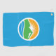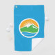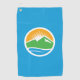 Golf Towel a design with the flag of Provo, Utah. A blue flag with the Provo City logo in the centre. The logo represents the Utah lake and nearby mountain peaks with the rising sun in the background