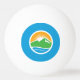 Ping Pong Ball with a design with the flag of Provo, Utah. A blue flag with the Provo City logo in the centre. The logo represents the Utah lake and nearby mountain peaks with the rising sun in the background