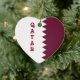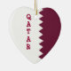 The flag of Qatar on a heart shaped ornament .it comes with the word Qatar .Great gift for proud nationals at any time of the year .Especially on their national day 18th December .