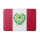 Bath mat with flag of city of Raleigh, North Carolina; flag with three vertical bands of red and white with city’s seal in the centre