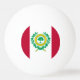 Ping pong ball with flag of city of Raleigh, North Carolina; flag with three vertical bands of red and white with city’s seal in the centre