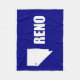 Blanket with flag of city of Reno, Nevada; blue flag with white shape of Nevada with star symbolising Reno’s location inside the state
