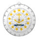This design features the state flag of Rhode Island, which is a state in the New England region of the United States. The state takes its short name from Rhode Island (known also as Aquidneck Island); however, most of the state is located on the mainland. The state has land borders with Connecticut to the west, Massachusetts to the north and east, and the Atlantic Ocean to the south via Rhode Island Sound and Block Island Sound; it also shares a small maritime border with New York. Providence is the state capital and most populous city in Rhode Island. The official nickname of Rhode Island is the "Ocean State"; it is also sometimes known as "Little Rhody". The official motto of Rhode Island is "Hope". The flag of the state of Rhode Island consists of a gold anchor surrounded by thirteen gold stars (representing the original 13 colonies); a blue ribbon below the anchor bears the state's motto in gold.