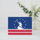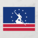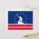 Postcard with flag of city of Richmond, Virginia; blue flag with red and white stripes, with white stripes and silhouette of man working James river bateau down the James river