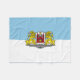 Blanke with design with flag of Riga, capital city of Latvia; white and blue flag with coats of arms with two golden lions holding a shield in the centre