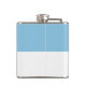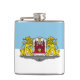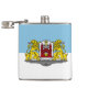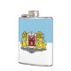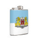 Vinyl wrapped flask with design with flag of Riga, capital city of Latvia; white and blue flag with coats of arms with two golden lions holding a shield in the centre